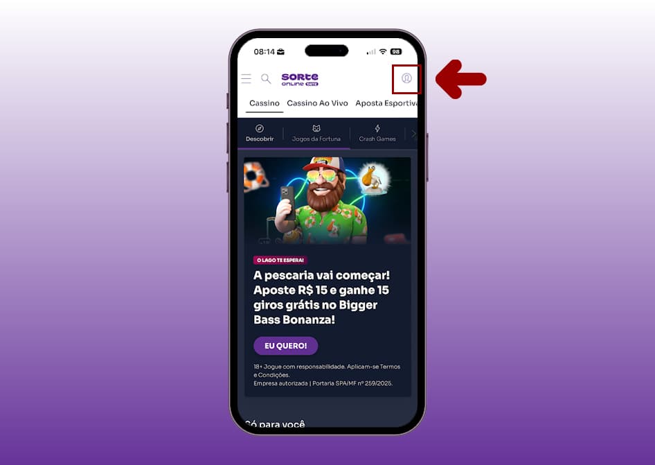 Acesse o site da Sorte Online e toque no ícone de perfil, localizado na parte superior da tela. Se você já tem conta, é só fazer o login normalmente. Caso ainda não seja cadastrado, o processo é rápido e já libera o acesso às promoções disponíveis na plataforma.