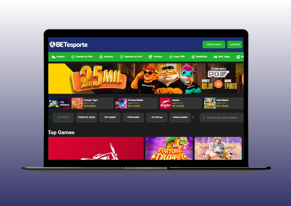 A BETesporte é uma plataforma brasileira de apostas online que combina um mercado esportivo completo com cassino variado. Conta com slots, roleta, blackjack, baccarat, jogos crashes e transmissões ao vivo. Oferece depósitos e saques via PIX, suporte 24 horas e promoções como torneios semanais e Super Odds diárias.