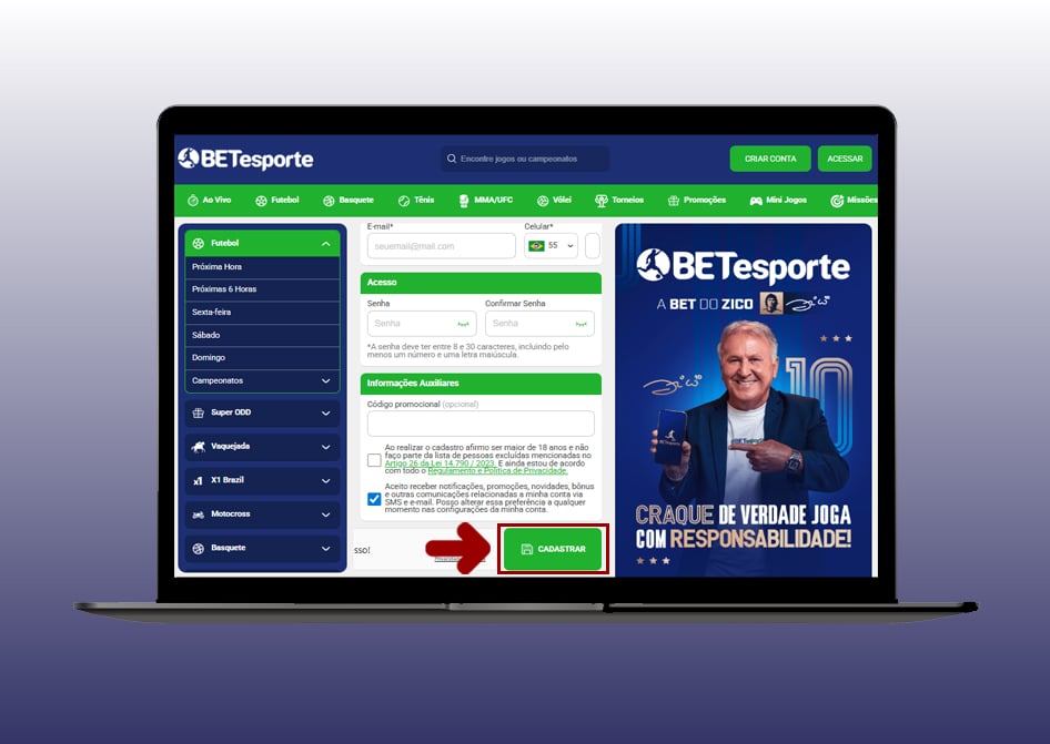 O cadastro é o primeiro passo que os usuários devem realizar na plataforma BETesporte.