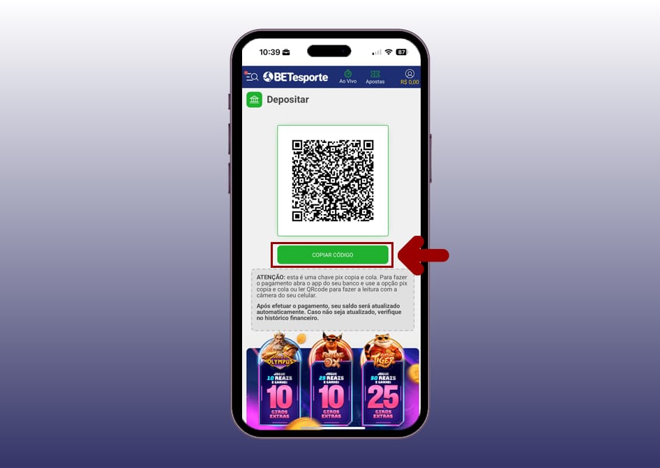 Após se divertir e lucrar na plataforma, chegou a hora de sacar os ganhos. O passo a passo para o saque também está descrito abaixo.