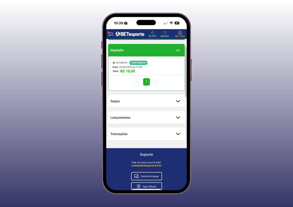Diferente de algumas casas concorrentes, a BETesporte ainda não conta com um aplicativo dedicado, seja para Android ou iOS. Isso pode decepcionar em um primeiro momento, já que muitos jogadores gostam de ter o app instalado no celular para acessar rapidamente.