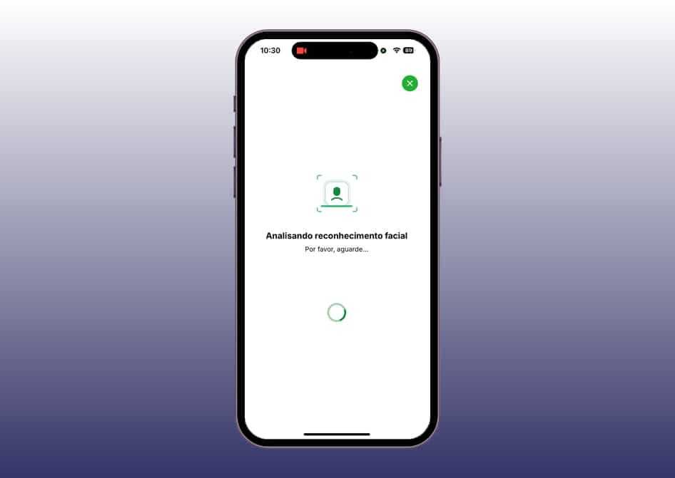 Tire a selfie solicitada pelo aplicativo e aguarde o reconhecimento facial finalizar.