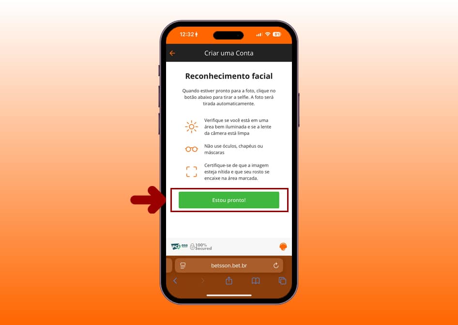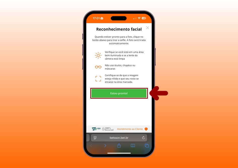 Faça o reconhecimento facial tocando em “Estou Pronto”.