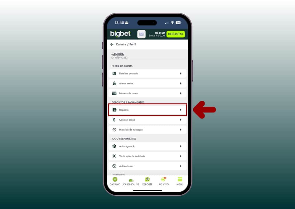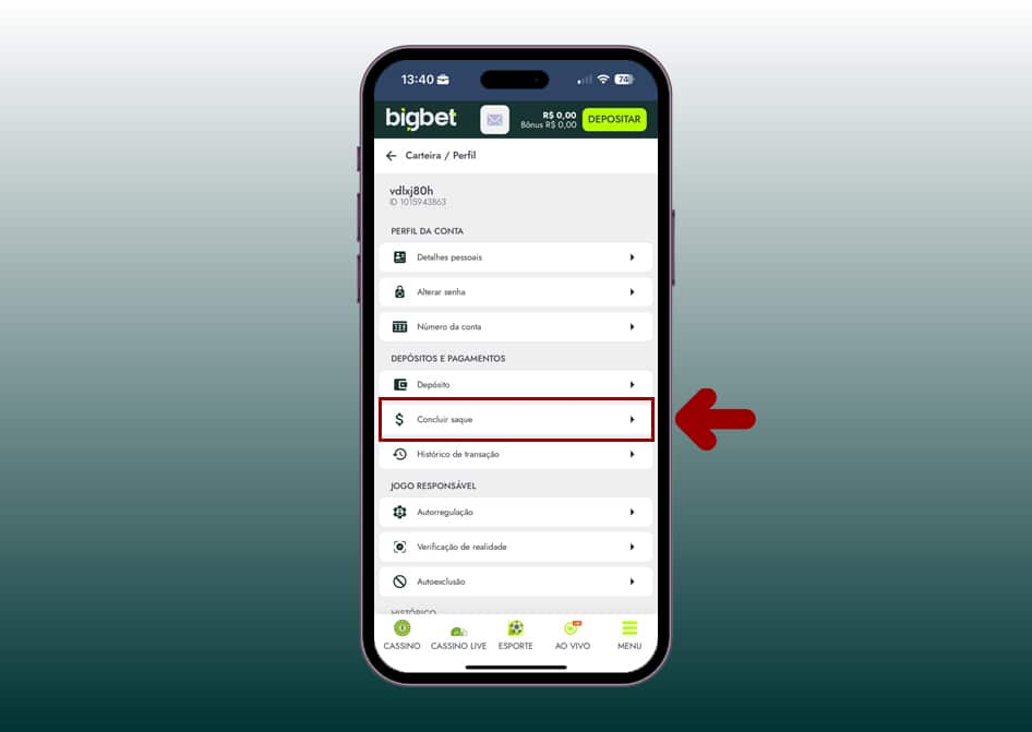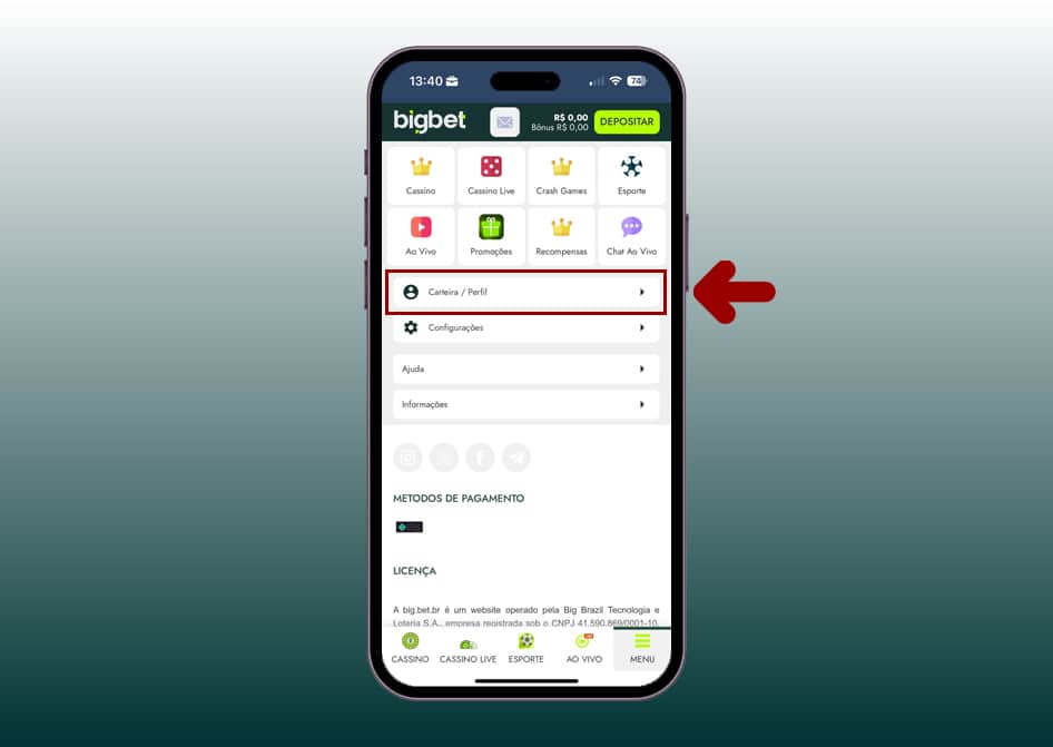 Toque na opção “Carteira/Perfil”.