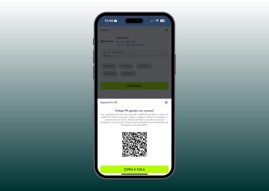 Depósito e saque via PIX, rápidos e sem burocracia.