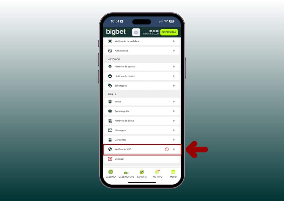 Depois, toque na opção “Verificação KYC”.