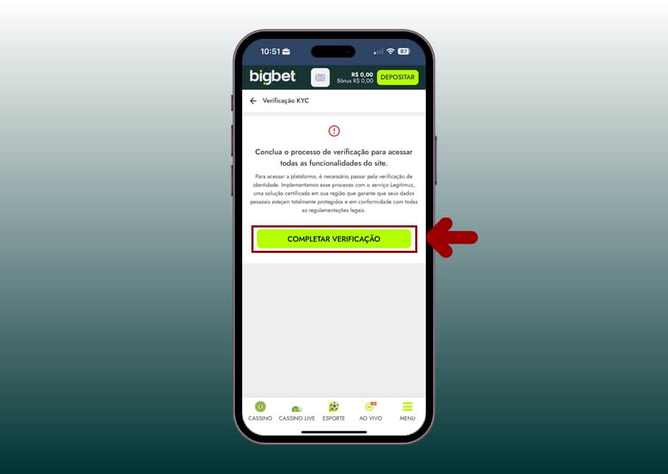 Toque na opção “Completar Verificação”.