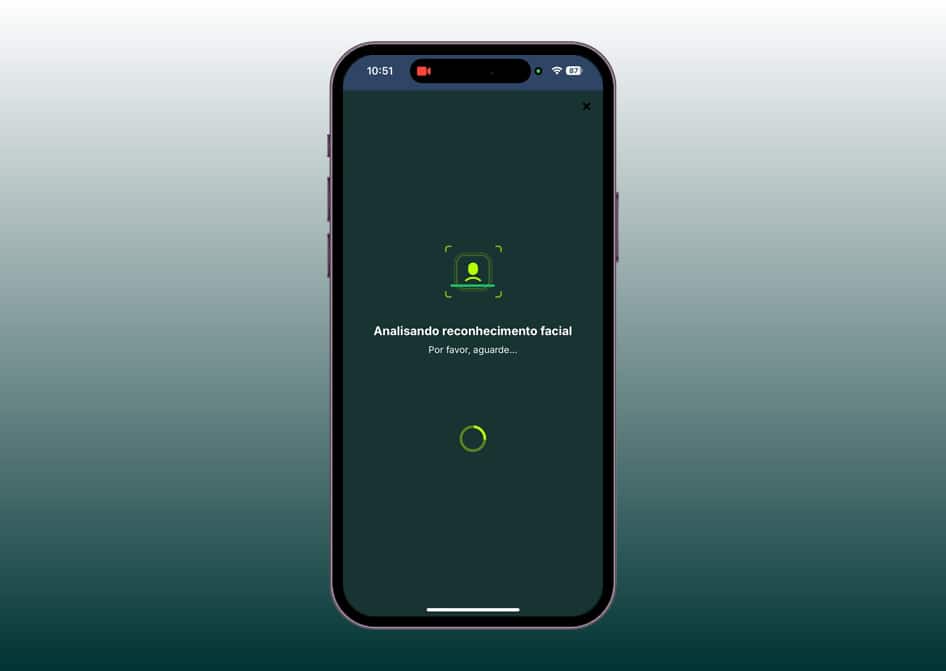 Tire uma selfie e aguarde o término da análise do reconhecimento facial.
